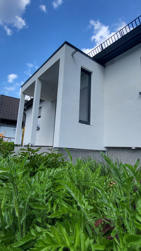 Im letzten Schritt wurde das neue Vordach aufgebaut und Verputzt.